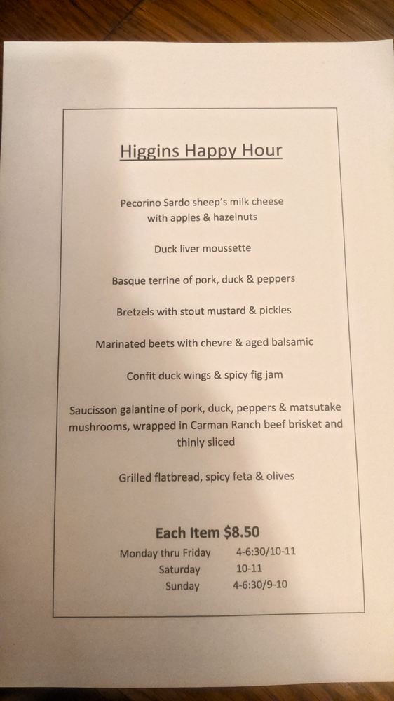 Introducing the menu at Higgins Restaurant located in Portland, Oregon, known for its New American cuisine. Start your dining experience with delectable starters like the forest mushroom bruschetta or the charcuterie board. Indulge in main courses such as the duck cassoulet or the Dungeness crab cakes. Vegetarians will love the garnet yam and mushroom samosas. Sandwich options include the grilled chicken sausage or the roasted beet flatbread. Customers rave about the fresh and flavorful farm-to-table dishes, with favorites like the halibut and garden salad. The cozy ambiance and exceptional service make Higgins a go-to spot for both locals and visitors. Don't miss out on the diverse menu offerings and impeccable dining experience at Higgins Restaurant.